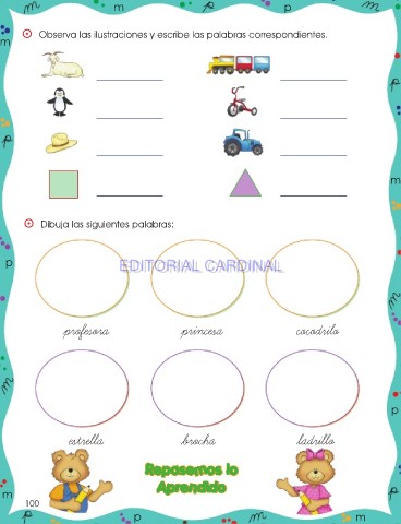 ⵙ Observa las ilustraciones y escribe las palabras correspondientes.