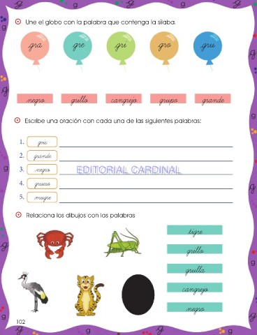 ⵙ Une el globo con la palabra que contenga la sílaba.