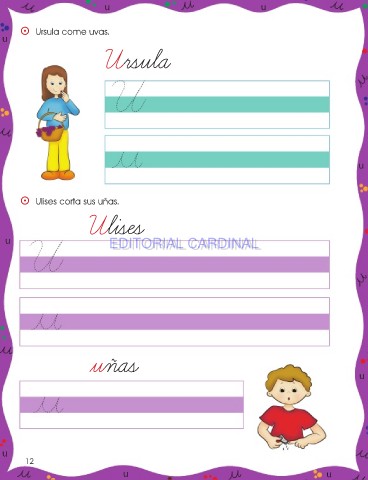 u u ⵙ Ursula come uvas. u Ursula u ⵙ Ulises corta sus uñas. Ulises u EDITORIAL CARDINAL EDITORIAL CARDINAL uñas u u 12 u u