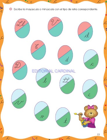 c c ⵙ Escribe la mayúscula o minúscula con el tipo de letra correspondiente. c T c d D c EDITORIAL CARDINAL EDITORIAL CARDINAL LL c c v c 53 c c