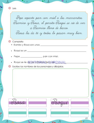ⵙ Escribe los nombres de los personajes y dibújalos.
