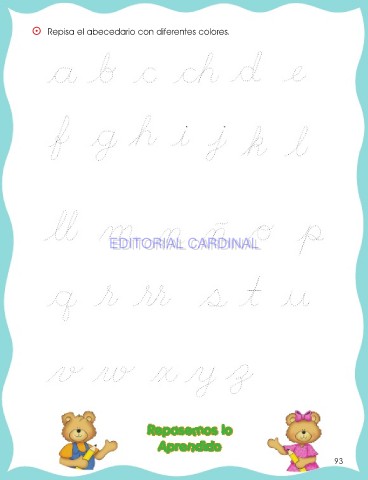 ⵙ Repisa el abecedario con diferentes colores. EDITORIAL CARDINAL EDITORIAL CARDINAL Repasemos lo R e pase m os l o Aprendidodo A pr endi 93 93