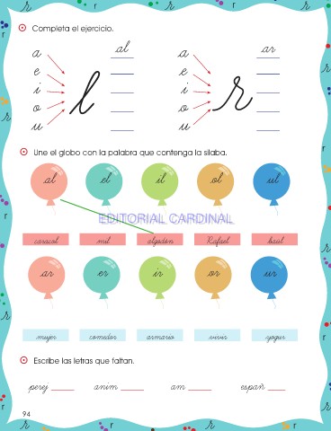 ⵙ Une el globo con la palabra que contenga la silaba.