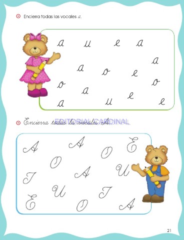 ⵙ Encierra todas las vocales a. a u e a a o e a o a o a u e e ⵙ Encierra todas la vocales A. EDITORIAL CARDINAL EDITORIAL CARDINAL 21 21