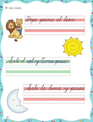 s l ⵙ Lee y copia. s Pepe peina al león s Sale el sol y Ema pasea l EDITORIAL CARDINAL EDITORIAL CARDINAL Sale la luna y pasea l s 38 l s