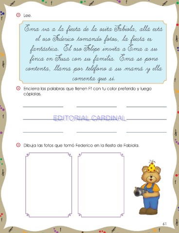 ⵙ Dibuja las fotos que tomó Federico en la fiesta de Fabiola.